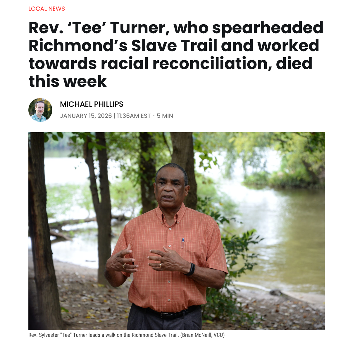 His impact and imprint from Hope in The Cities, Community Trustbuilding Fellowship, Richmond’s Trail of the Enslaved, the Reconciliation Statue, and the UNESCO Collective Healing Circles program marks ripples across our hearts, our city, our commonwealth, our nation, and our world. We know Rev Tee’s spirit remains in the circle of racial healing with us, though now in a higher plane. We invite those who have been impacted by the life of Rev Tee to join us on a virtual commemorative call on January 26th at 8pm EST. Click the button below to access the zoom link.